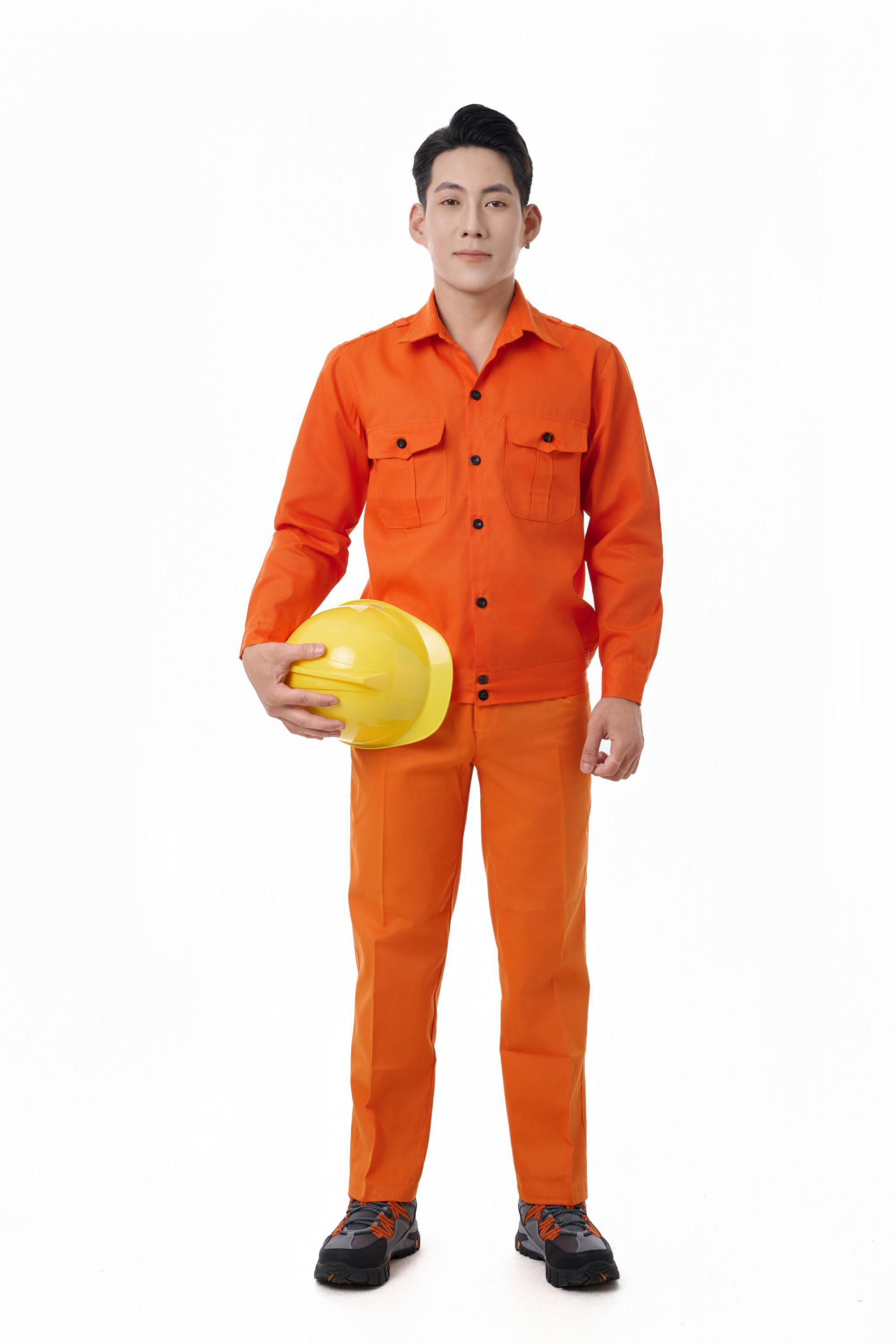 Bộ quần áo bảo hộ màu cam thường dùng cho người làm thợ điện, kỹ thuật viễn thông, công nhân nhà máy. Màu sắc bộ đồ nhẹ nhàng, tạo cảm giác dễ chịu thoải mái khi nhìn vào người mặc. Sản phẩm dành cho nhiều đối tượng và ngành nghề để tăng tính chuyên nghiệp cho công việc.