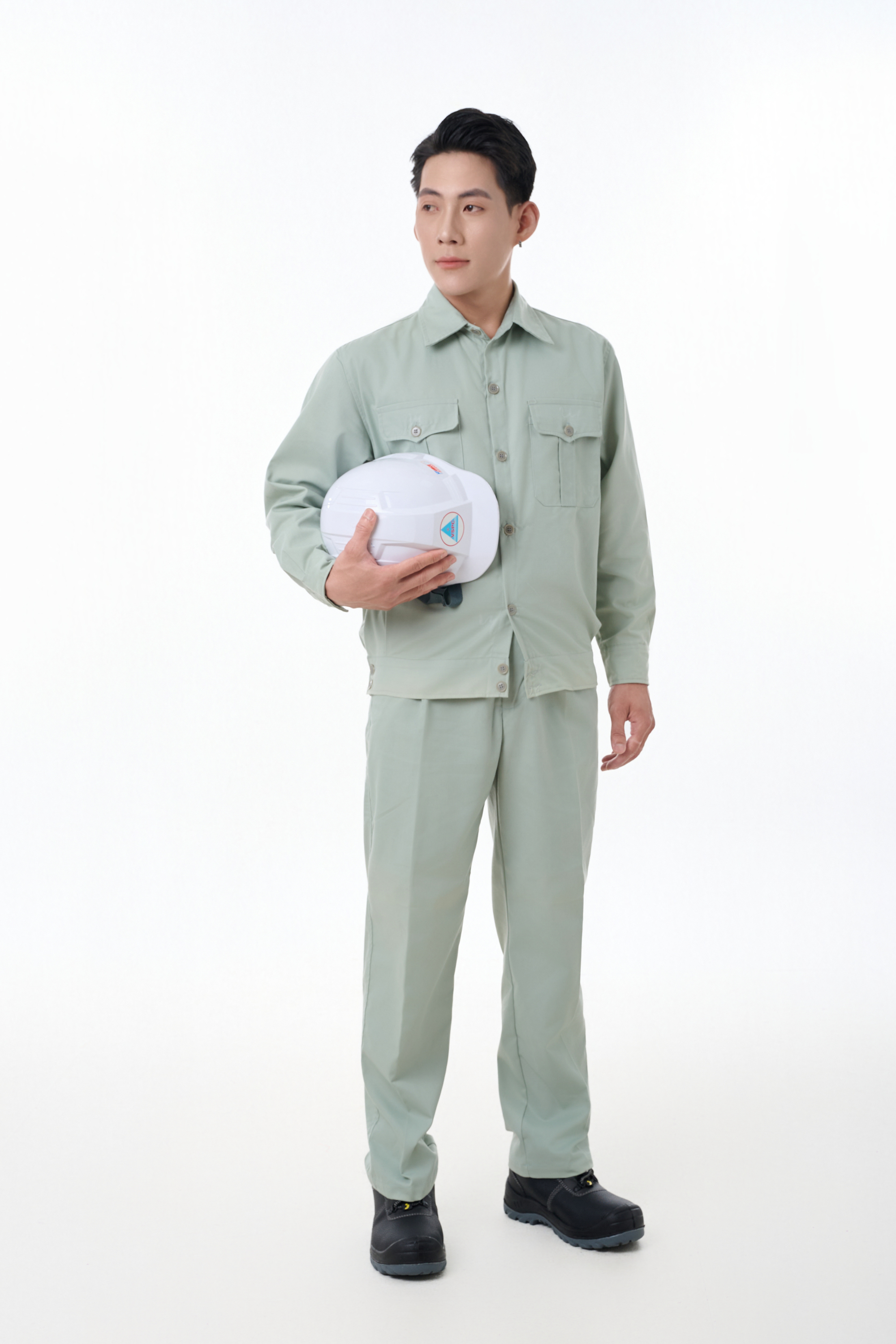 Bộ quần áo bảo hộ màu ghi thường dùng cho người làm thợ điện, kỹ thuật viễn thông, công nhân nhà máy. Màu sắc bộ đồ nhẹ nhàng, tạo cảm giác dễ chịu thoải mái khi nhìn vào người mặc. Sản phẩm dành cho nhiều đối tượng và ngành nghề để tăng tính chuyên nghiệp cho công việc.