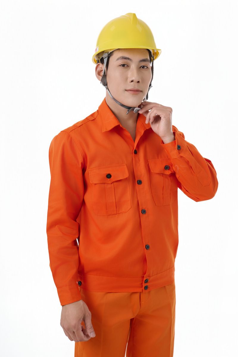 Bộ quần áo bảo hộ màu cam thường dùng cho người làm thợ điện, kỹ thuật viễn thông, công nhân nhà máy. Màu sắc bộ đồ nhẹ nhàng, tạo cảm giác dễ chịu thoải mái khi nhìn vào người mặc. Sản phẩm dành cho nhiều đối tượng và ngành nghề để tăng tính chuyên nghiệp cho công việc.
